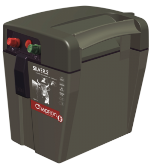 Électrificateur de clôture portable à alimentation par pile 9 V et accumulateur 12 V 12 Ah.